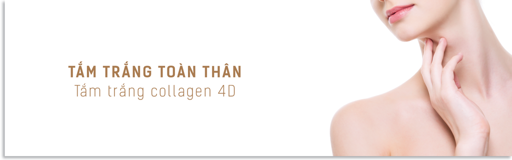 Tắm trắng collagen 4D là phương pháp làm trắng da được chuyển giao công nghệ độc quyền Hàn Quốc. Với thành phần chiết xuất từ nhau thai cừu, tinh chất sữa dê, vitamin E,.. được dẫn sâu vào tế bào hạ bì của da giúp da trắng hồng từ sâu bên trong, ức chế các sắc tố melanin sẫm màu đồng thời vẫn giữ được độ ẩm mịn màng, săn chắc cho da.
