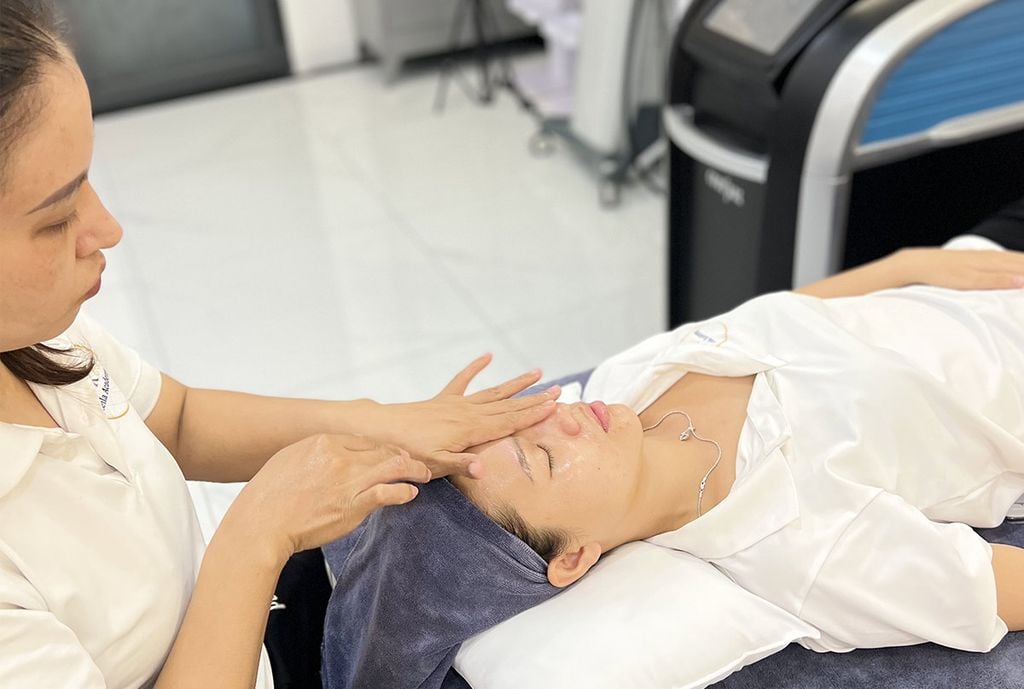 - Sử dụng máy đắp mặt nạ chăm sóc da.