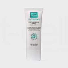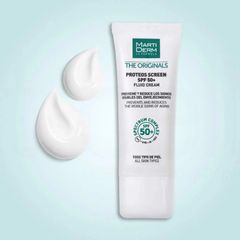Kem Chống Nắng MartiDerm The Originals Proteos Screen SPF50+ Fluid Cream kem chống nắng dạng lỏng dễ hấp thụ với chỉ số SPF 50+ giúp ngăn ngừa và sửa chữa các dấu hiệu lão hoá da sớm. Sản phẩm cung cấp màng lọc chống nắng phổ rộng chống lại các tia UVA, UVB, IR (hồng ngoại), HEV (ánh sáng xanh). Sự kết hợp của Proteoglycans, phức hợp Spectrum Complex, phức hợp Hyaluronic Acid & Silicon Complex giúp giữ cho làn da trẻ trung, tươi tắn và đều màu. Kết cấu dạng cream-to-powder độc đáo mang lại cảm giác mượt mà, mỏng nhẹ tựa "vô hình" trên da, lý tưởng dành cho mọi loại da khi sử dụng hằng ngày nhờ các ưu điểm tuyệt vời sau: